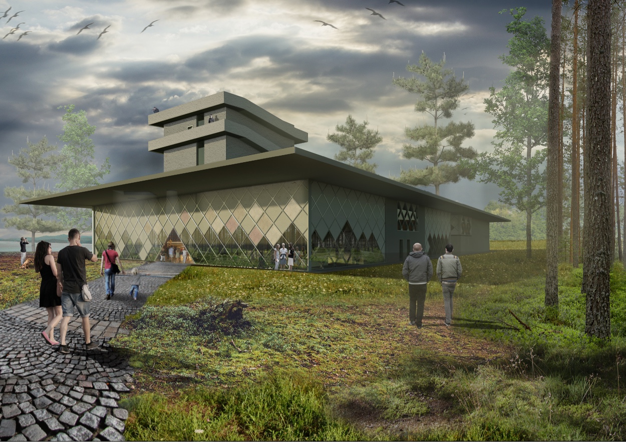 The design becomes a monument of the skyline, with the 20m observation tower that rises above the tops of firs and pines where it aligns with the