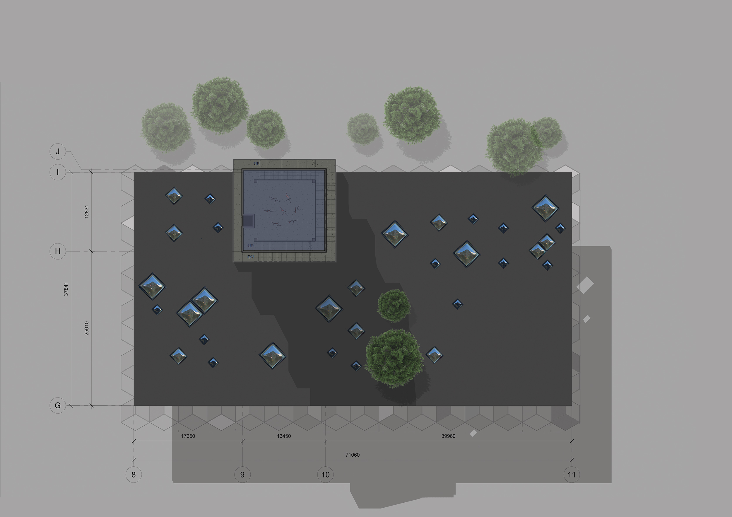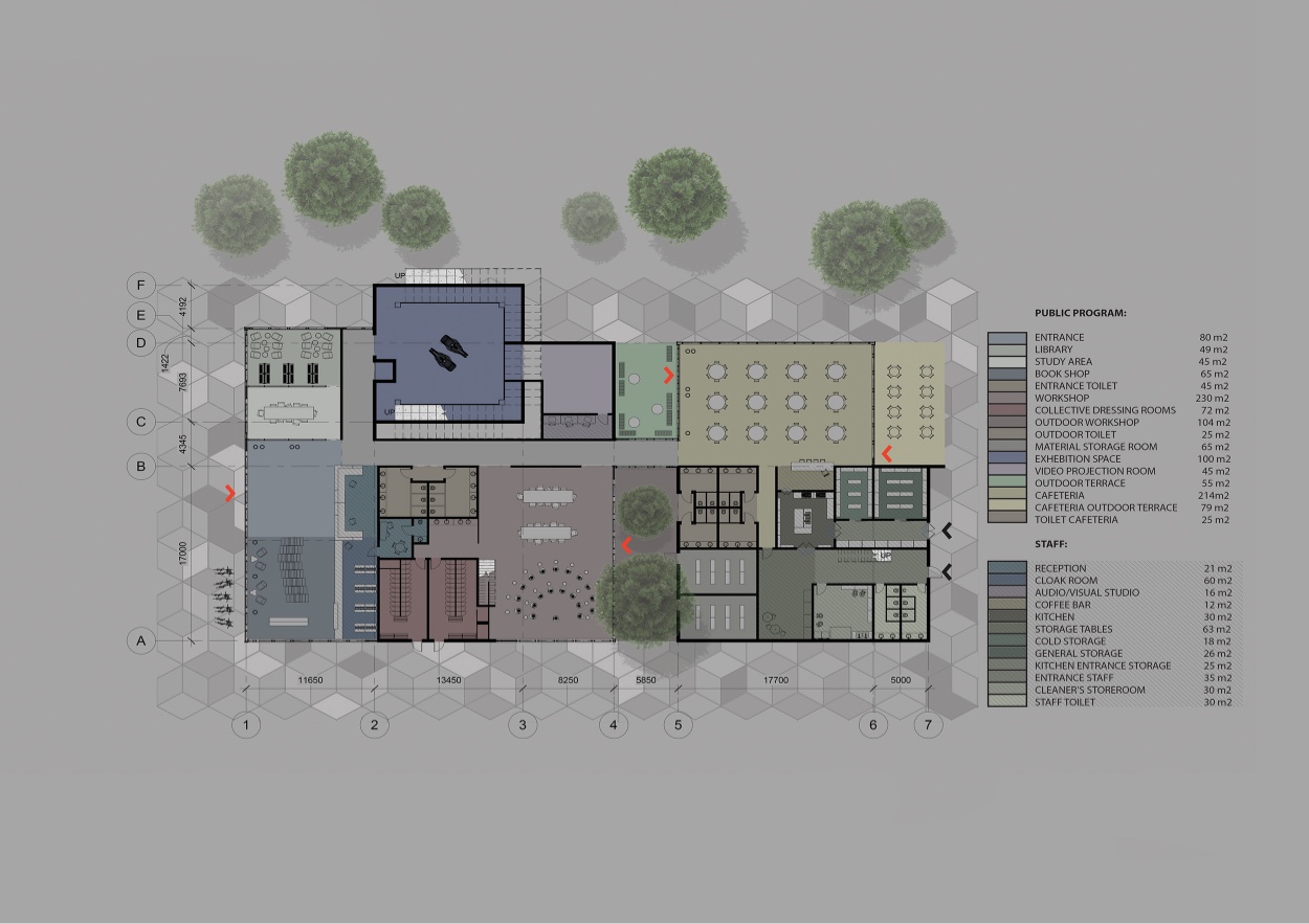 continuously reminding visitors of the exterior surroundings, blurring the lines between inside and outside. The facade design was proposed from