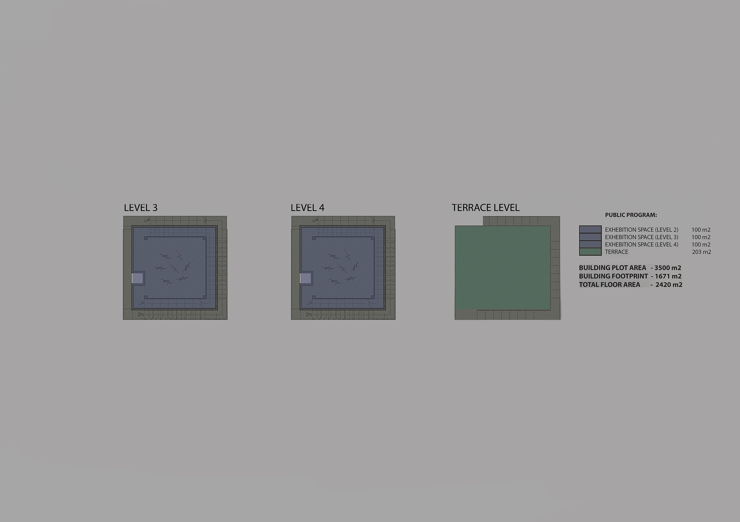 The design consists of a bold striking structure that is as much part of the exhibit as the art it contains. The program was designed to create