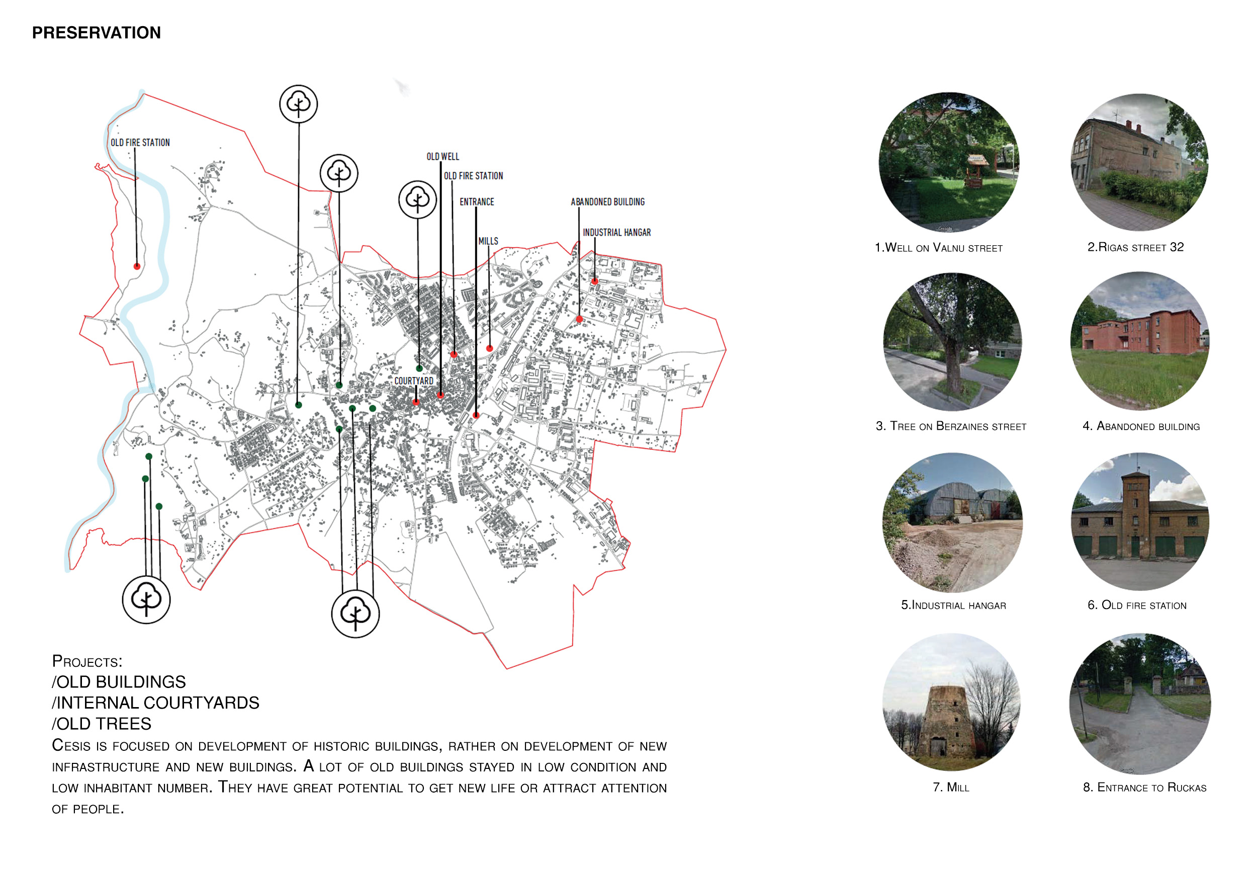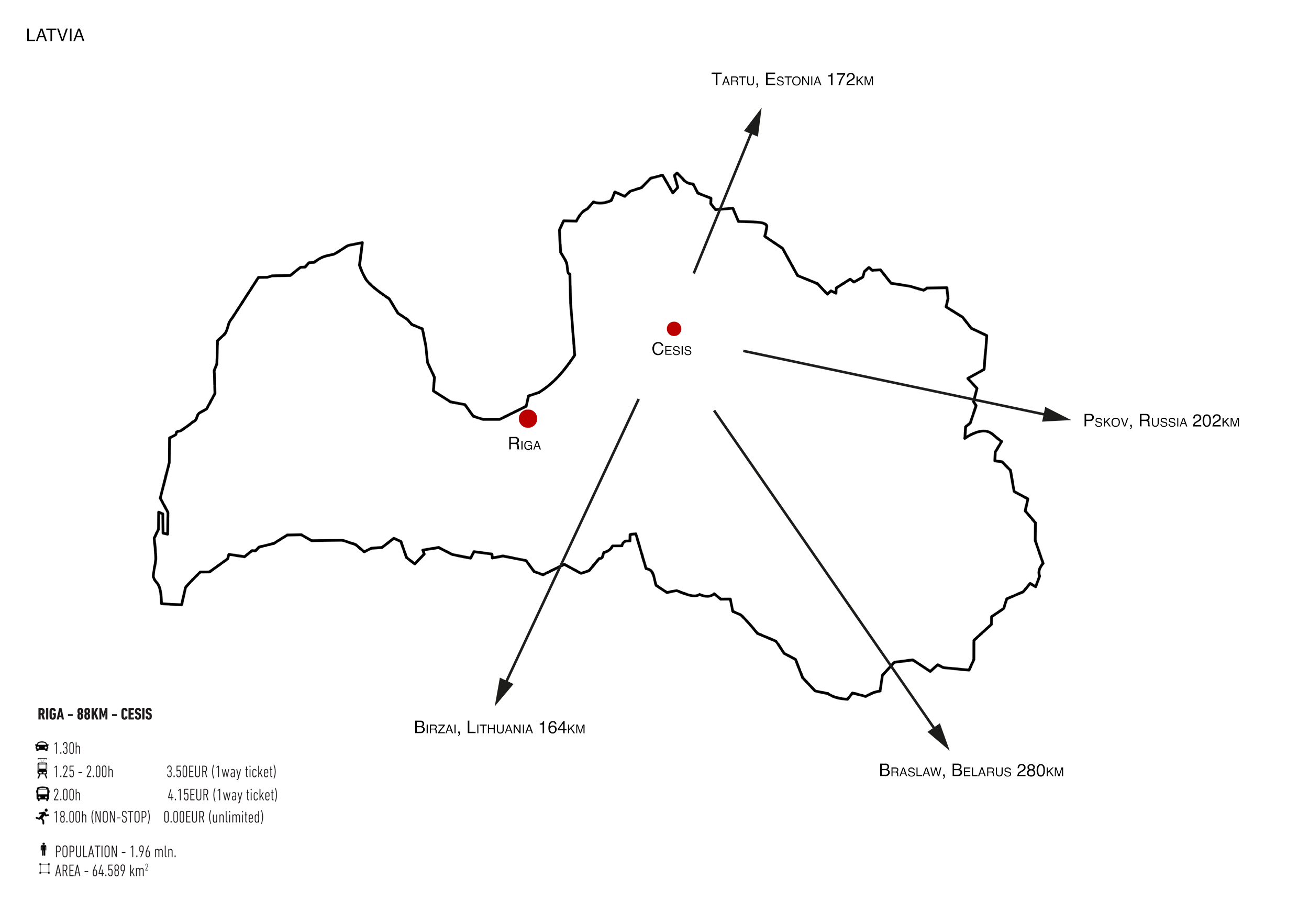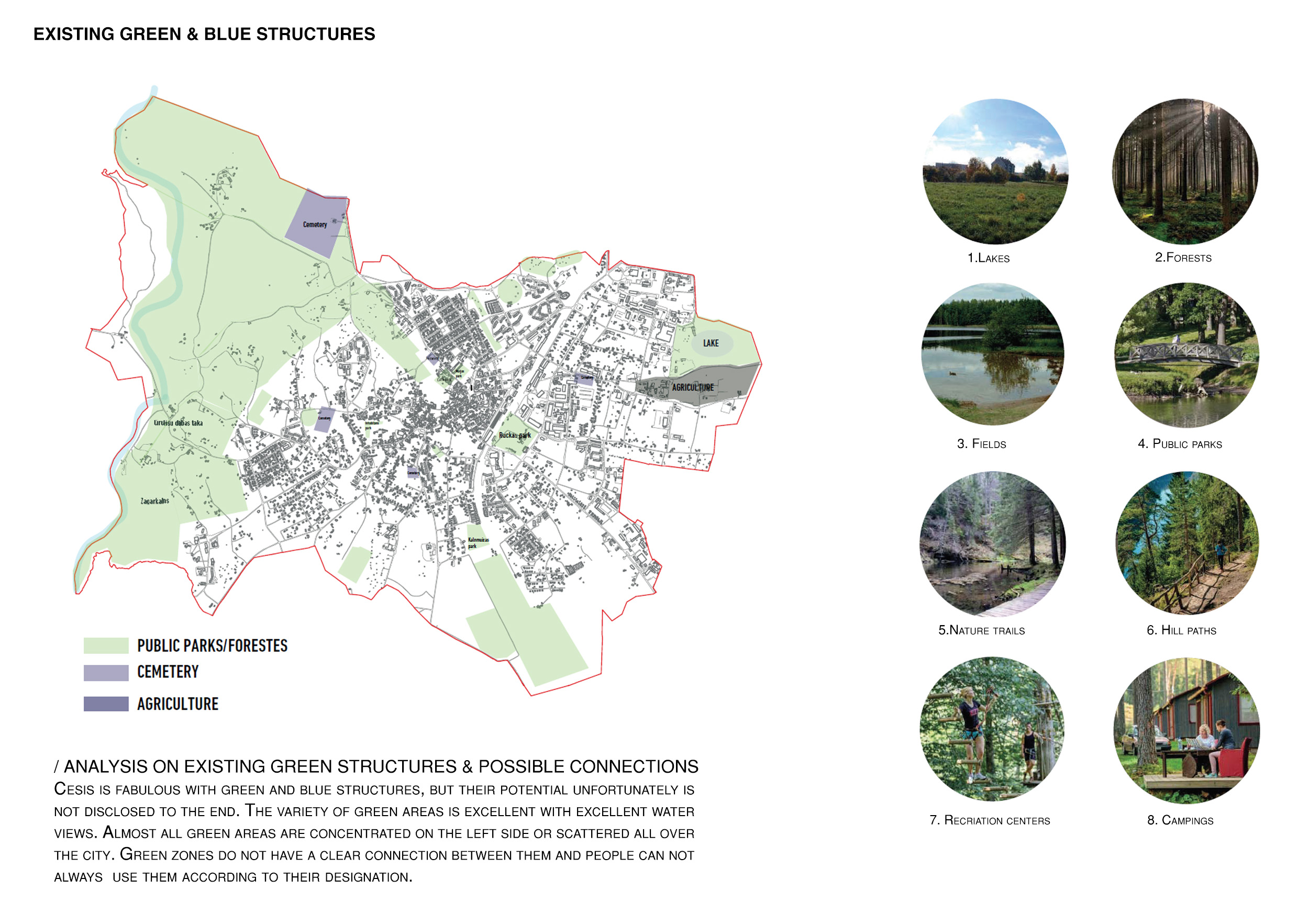 Cesis is a charming city fusing together medieval history and contemporary culture. The unique feel and hospitality of this 800-year-old city attract tourists all year long – from the Baltic’s biggest ski resorts to the preserved medieval layout of the cobbled streets of Cesis Old Town. The proposal for the LOOP came from the analysis where the city is divided into three parts atmospherically and physically leaving all attraction points scattered around and sometimes without access for visitors. Cesis LOOP acts as a one connection element through all the city’s most interesting parts which in addition will include new different interventions. In the consequence, it creates a city as one organism. To make a feeling of the loop and bring a modern physical response, some of the design elements repeat on all its way, creating a subconscious dialogue with inhabitants.
