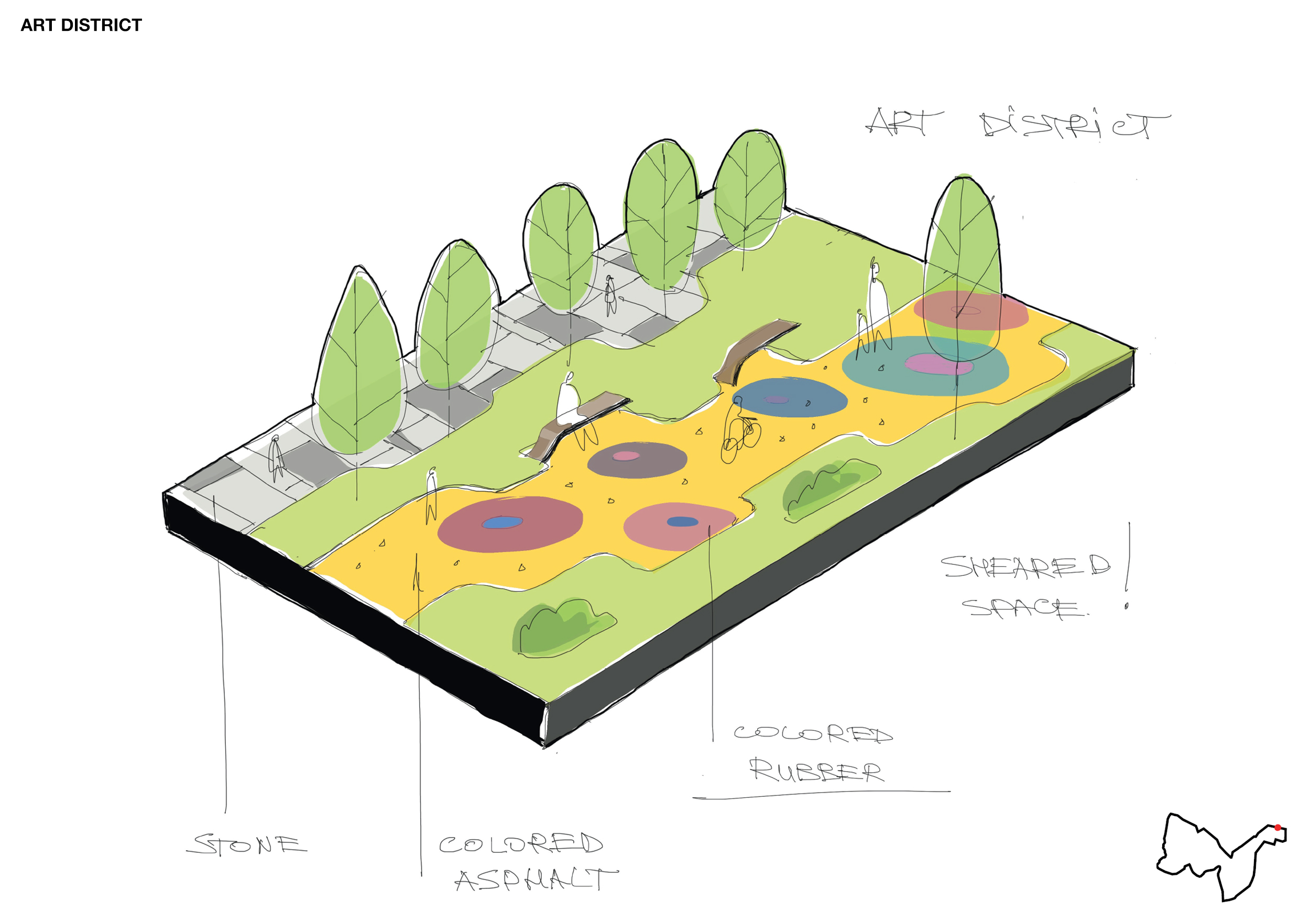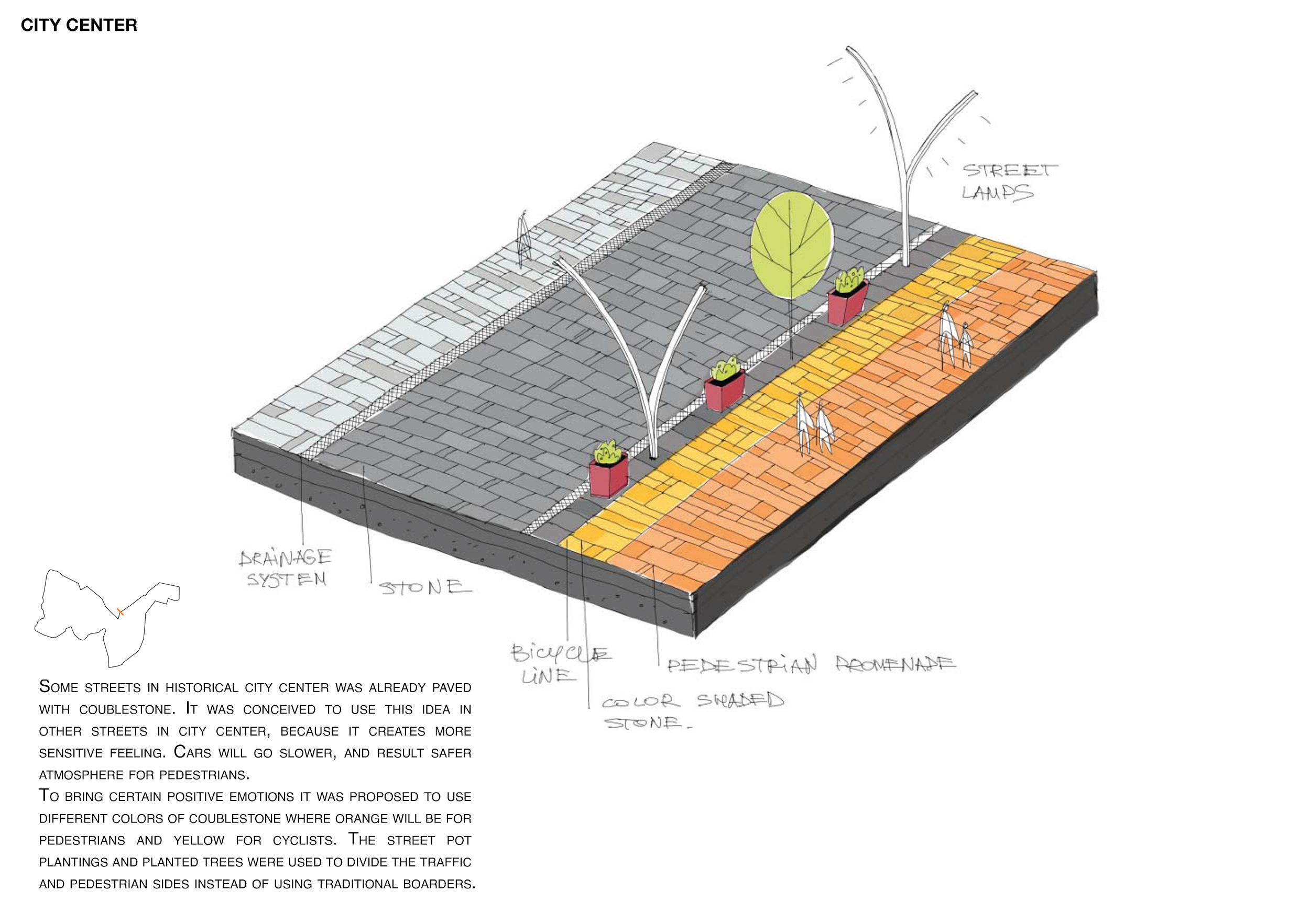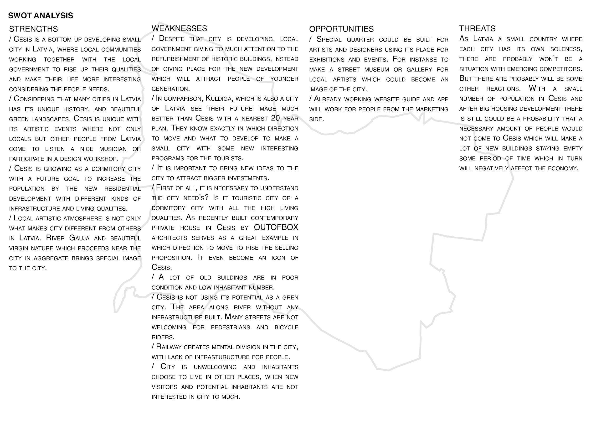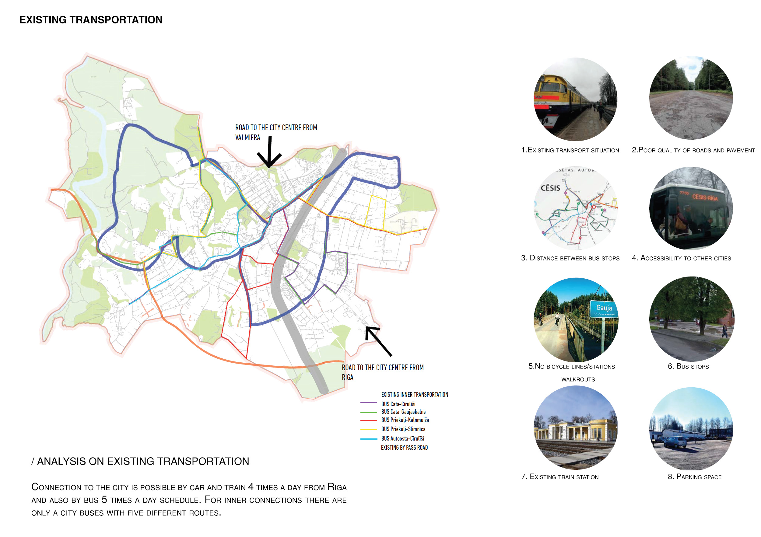 Cesis is a charming city fusing together medieval history and contemporary culture. The unique feel and hospitality of this 800-year-old city attract tourists all year long – from the Baltic’s biggest ski resorts to the preserved medieval layout of the cobbled streets of Cesis Old Town. The proposal for the LOOP came from the analysis where the city is divided into three parts atmospherically and physically leaving all attraction points scattered around and sometimes without access for visitors. Cesis LOOP acts as a one connection element through all the city’s most interesting parts which in addition will include new different interventions. In the consequence, it creates a city as one organism. To make a feeling of the loop and bring a modern physical response, some of the design elements repeat on all its way, creating a subconscious dialogue with inhabitants.