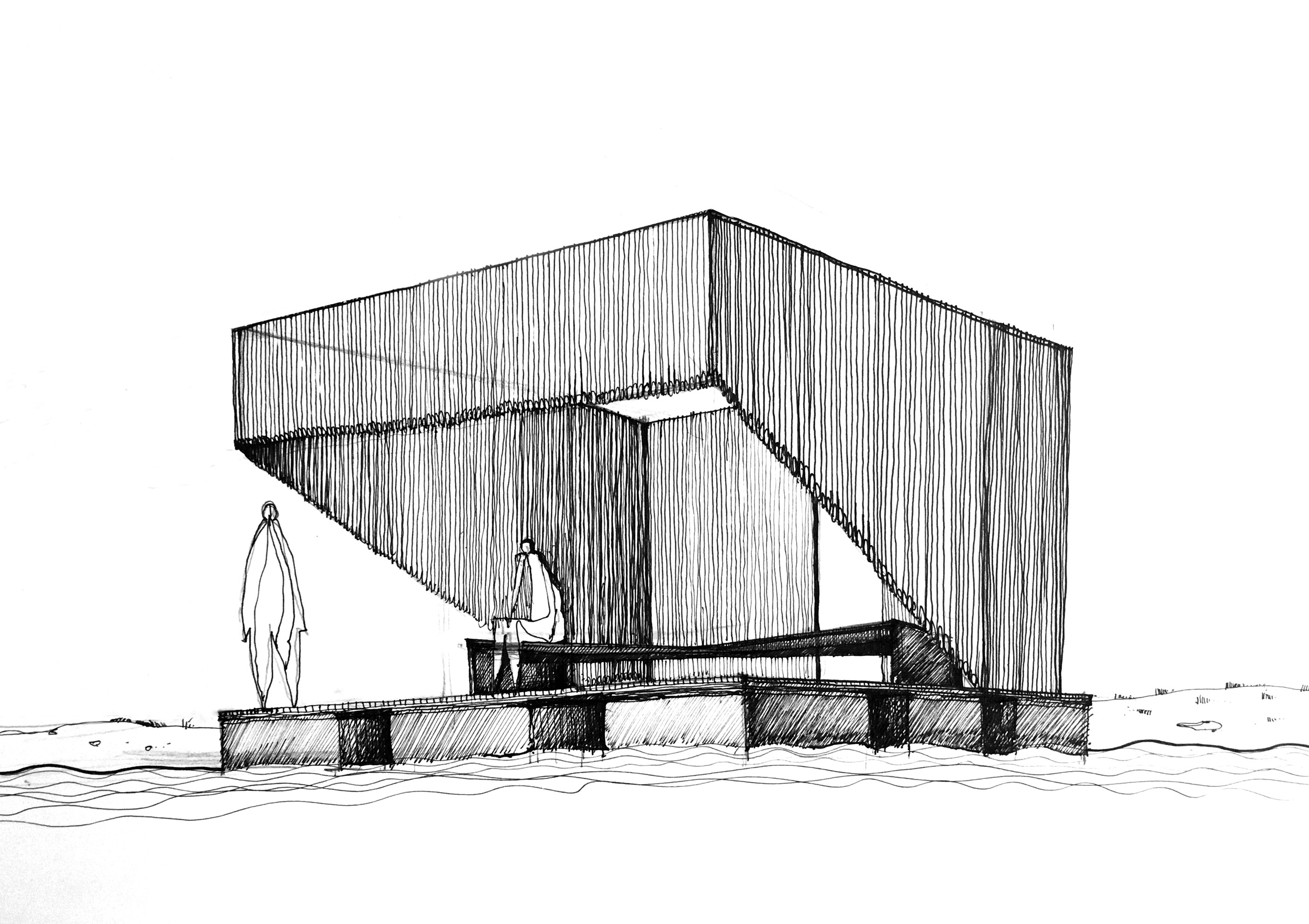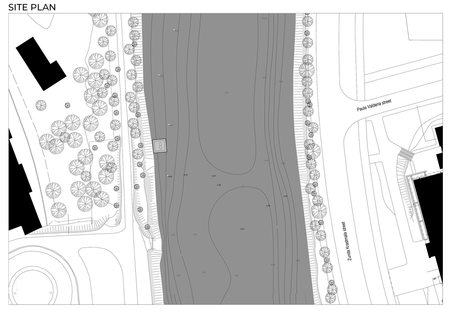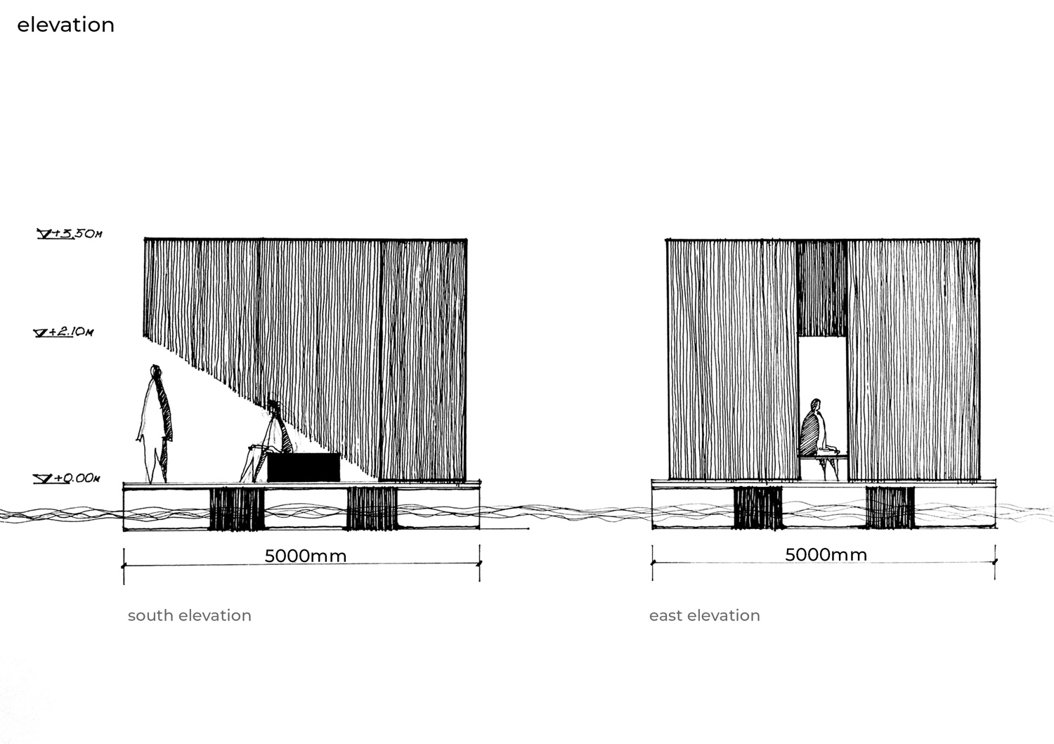 More than anything else water is a source of life and the great symbol of life. All life depends on water, nothing escapes its influence, and nothing lives without it. Water plays a vital role in shaping our built environment, as it has done for centuries... We depend on it, we use it, we live with it and we must respect it! Activating the “Zunda” canal with the floating pavilion, it was significant to emphasize that water could be not only the element of division but also a place of communication and dialogue. Having two architectural schools each on the opposite shores, pavilion could become a symbol of spiritual and physical connection, revealing the sensitive sides of architecture. Taking aluminum tubes of different lengths and hanging them on a steel frame, the pavilion would recall us to the idea of wind chimes, which represent someone who is familiar to us in spirit sharing the same idea. Chimes produce different sounds depending on the strength and gust frequency, where the larger and longer the tubes are, the lower and deeper the sounds. The shorter tubes are placed on the east side, having a 180-degree opening view to the opposite shore, creating visual interest for potential visitors…